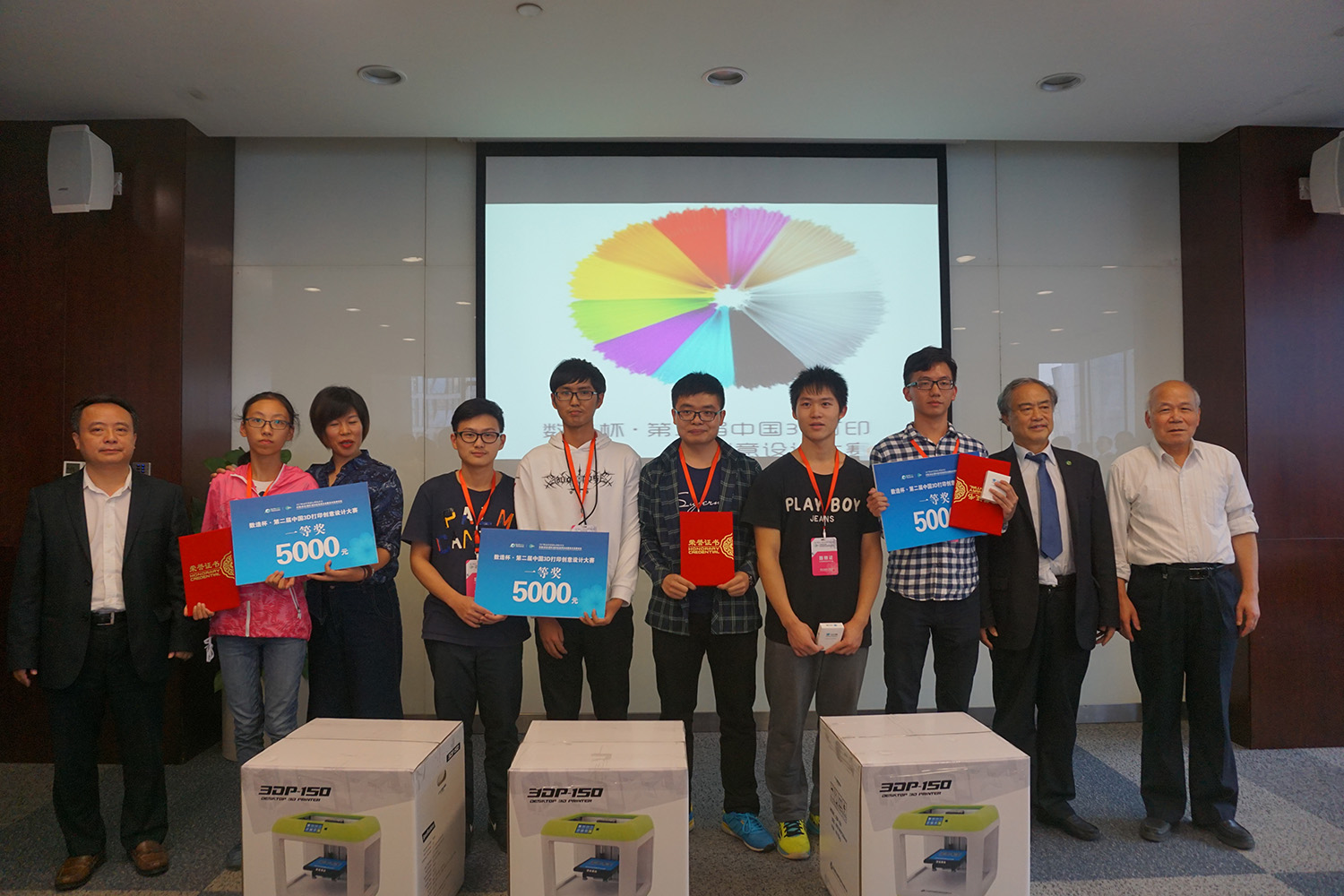 本屆數(shù)造杯·全國3D打印創(chuàng)意設(shè)計(jì)大賽取得了圓滿成功!盧院士攜眾評(píng)委與參賽選手合影留念。